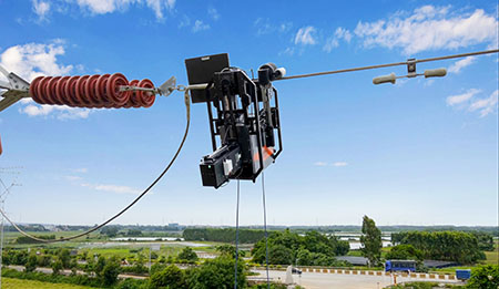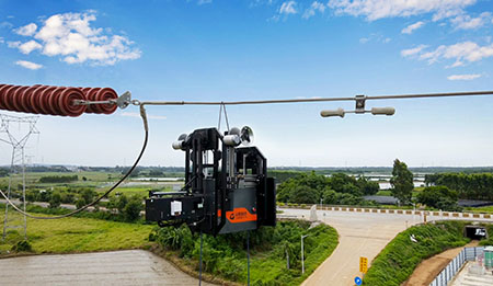 The robot automatically launches onto the line with one button press, achieving autonomous attachment to and detachment from the conductor through fully automatic opening and closing of the hanging arm. The process is intelligent and efficient, reducing the operational skill requirements for personnel.