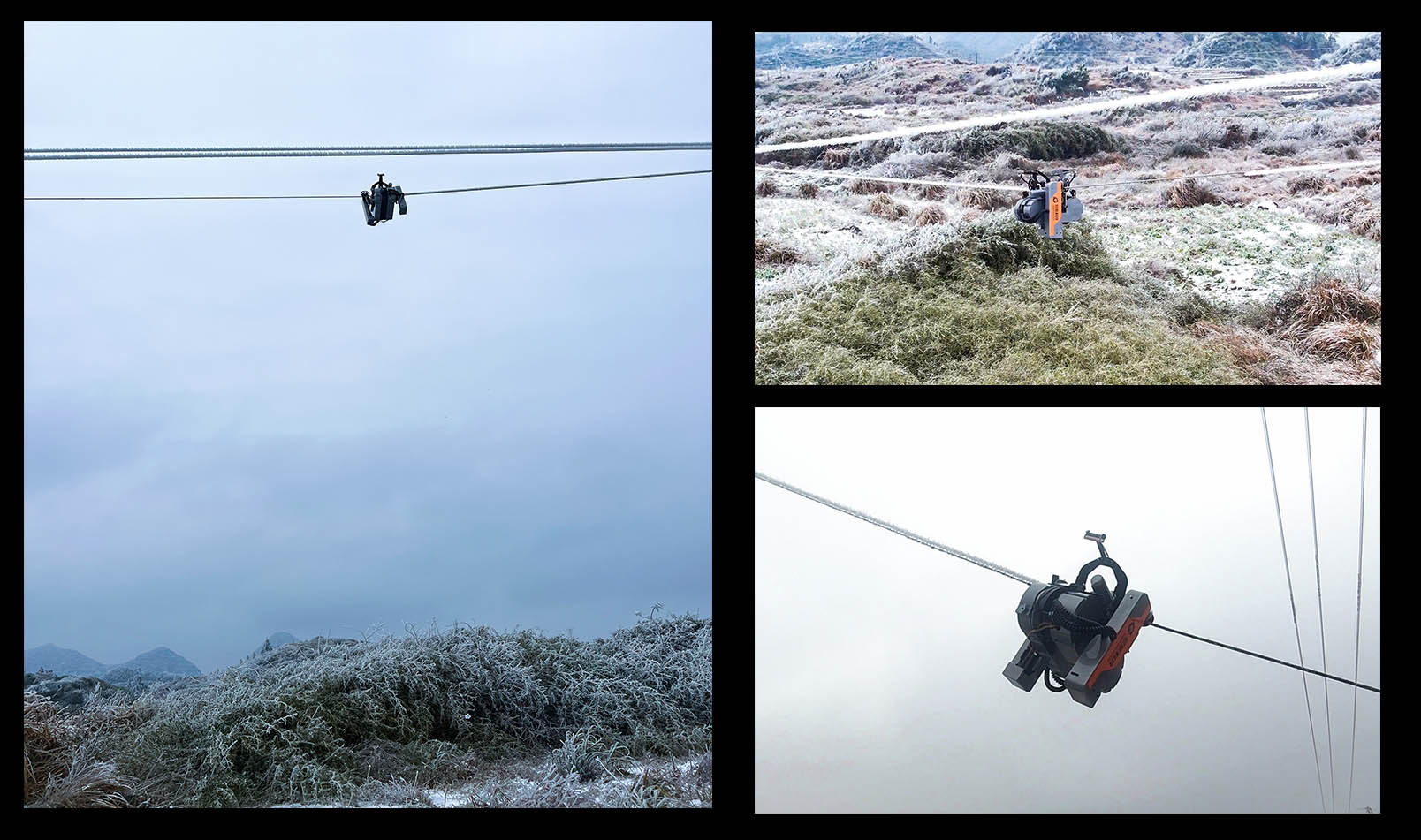 • The robot can efficiently remove ice from high-voltage power lines while they are live, ensuring stable power supply during operation.